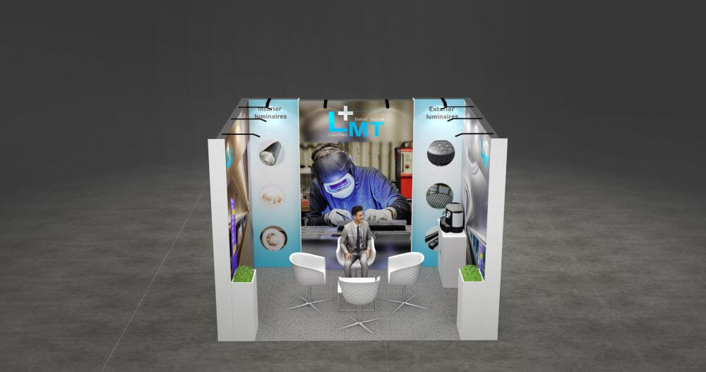Kostenloses 3D-Design – unabhängig davon, ob Sie einen Stand mieten oder kaufen wollen, wir bieten Ihnen einen kostenlosen 3D-Service ohne Verpflichtungen