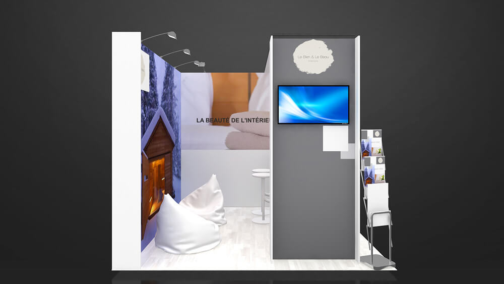 • Conception 3D gratuite - Que vous décidiez de louer ou d’acheter votre stand, nous vous offrons un service de conception 3D gratuite, sans obligation