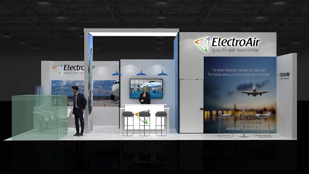 Gerne erstellen wir für Ihren 10x4m Messestand ein Gratis 3D Design. Auf Wunsch übernehmen wir auch die Logistik und den Auf- und Abbau bis hin zur Einlagerung.