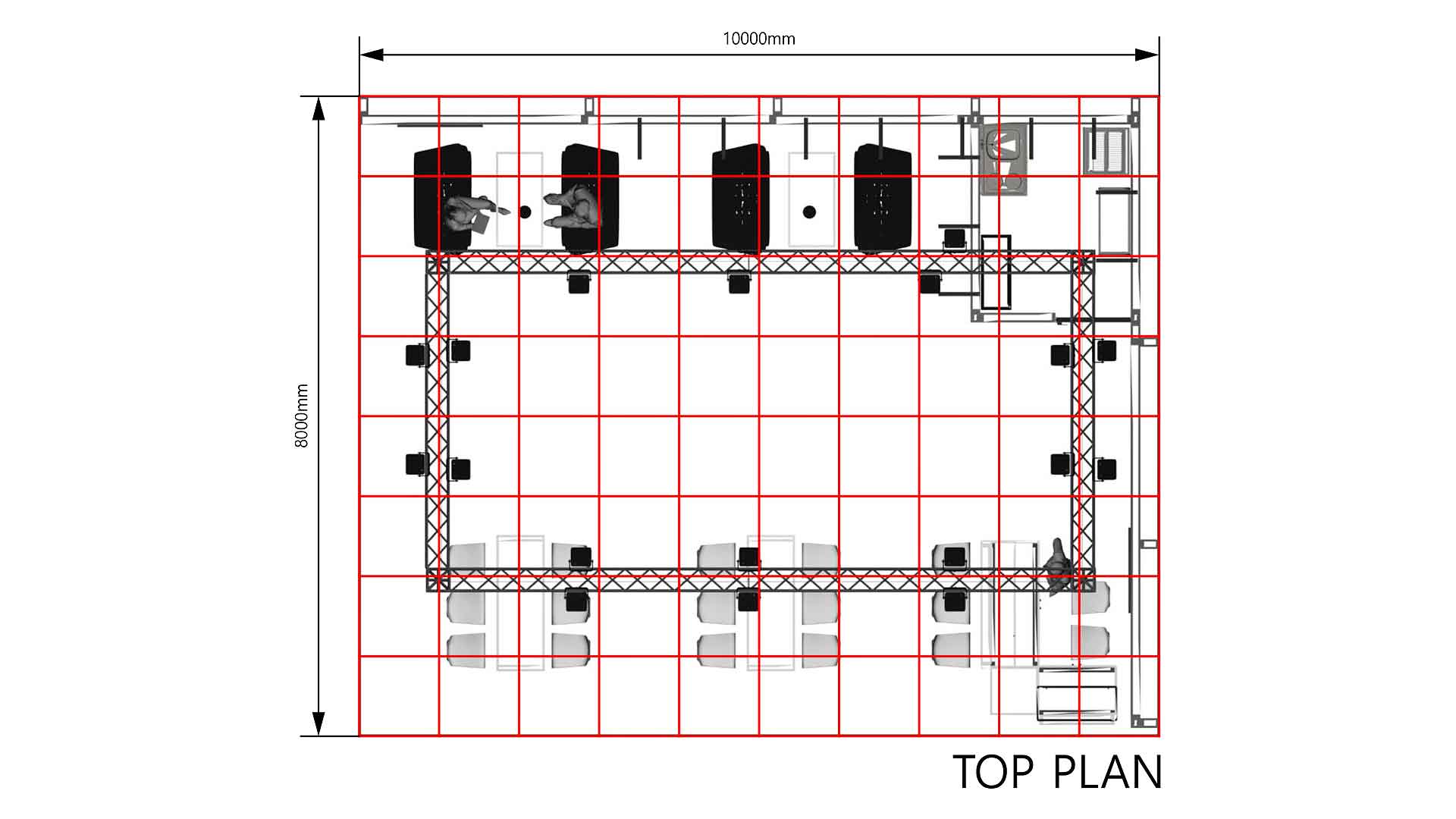 Gesamte Hardware für Wände und Dachkonstruktionen, Messetheken, Vitrinen und Podeste (wie abgebildet)