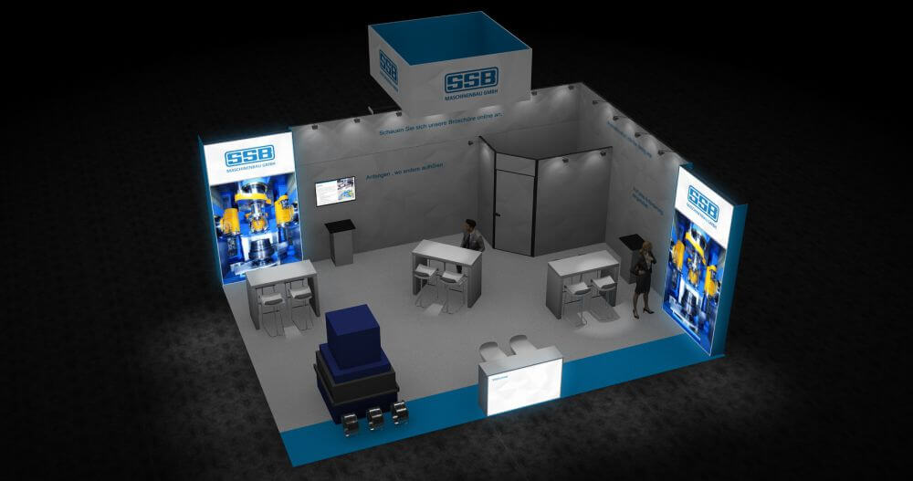 Kostenloses 3D-Design – unabhängig davon, ob Sie einen Stand mieten oder kaufen wollen, wir bieten Ihnen einen kostenlosen 3D-Service ohne Verpflichtungen