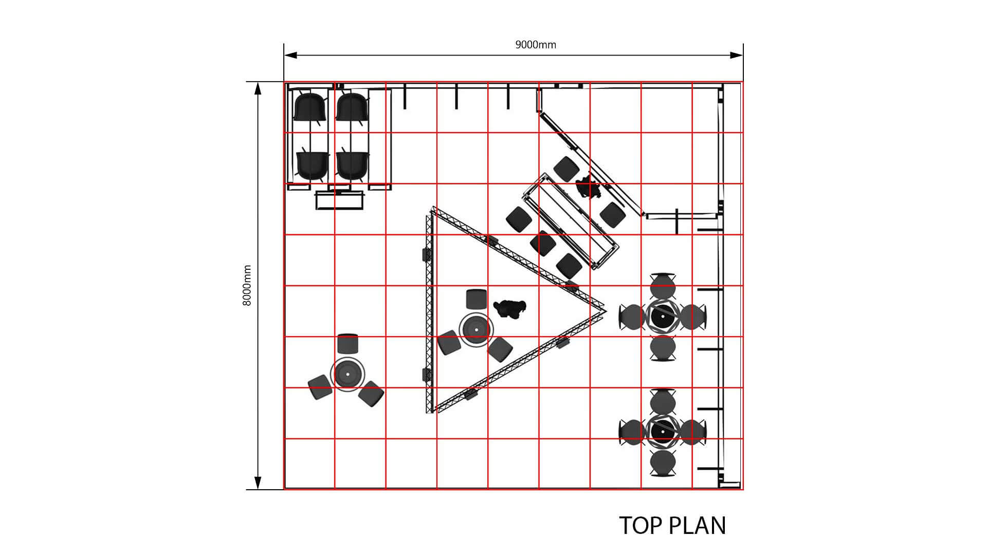Gesamte Hardware für Wände und Dachkonstruktionen, Messetheken, Vitrinen und Podeste (wie abgebildet)