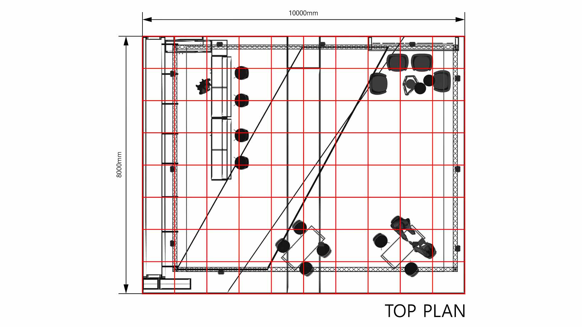 Gesamte Hardware für Wände und Dachkonstruktionen, Messetheken, Vitrinen und Podeste (wie abgebildet)