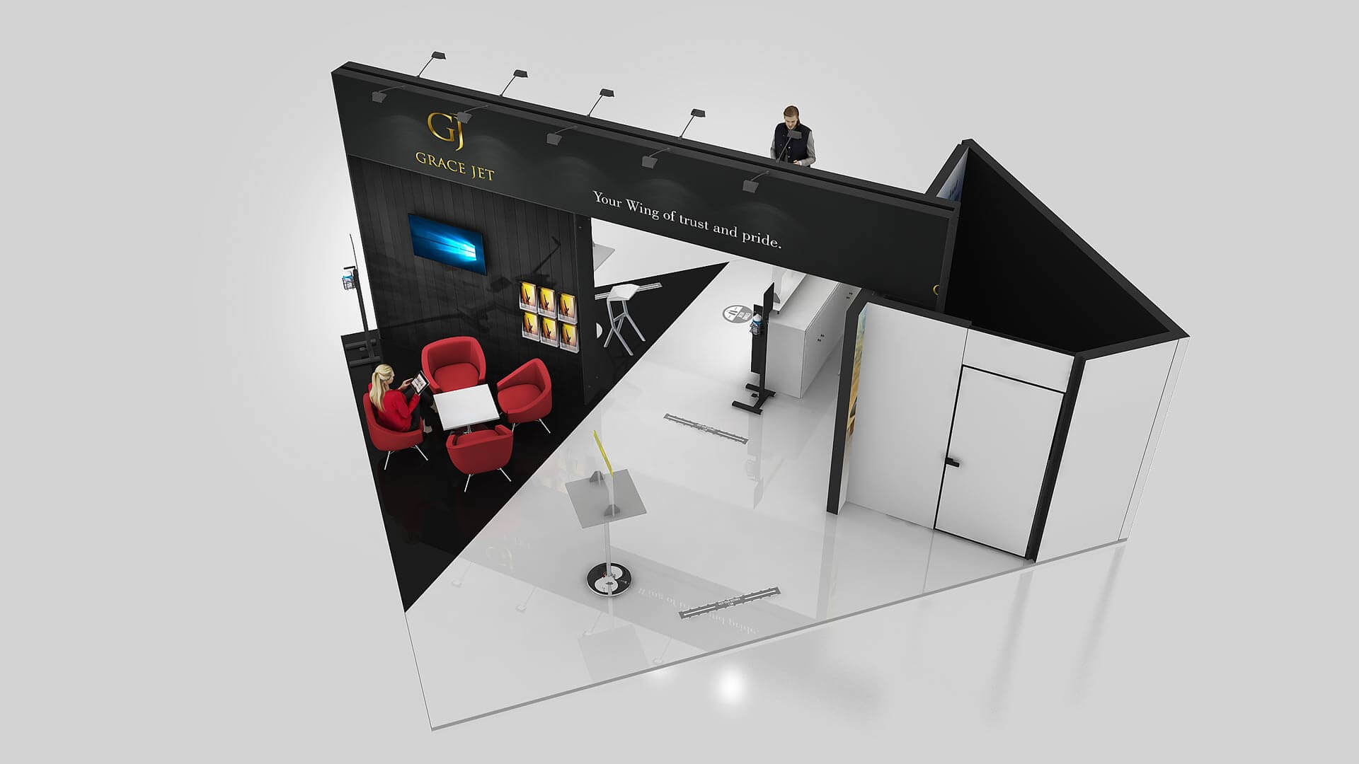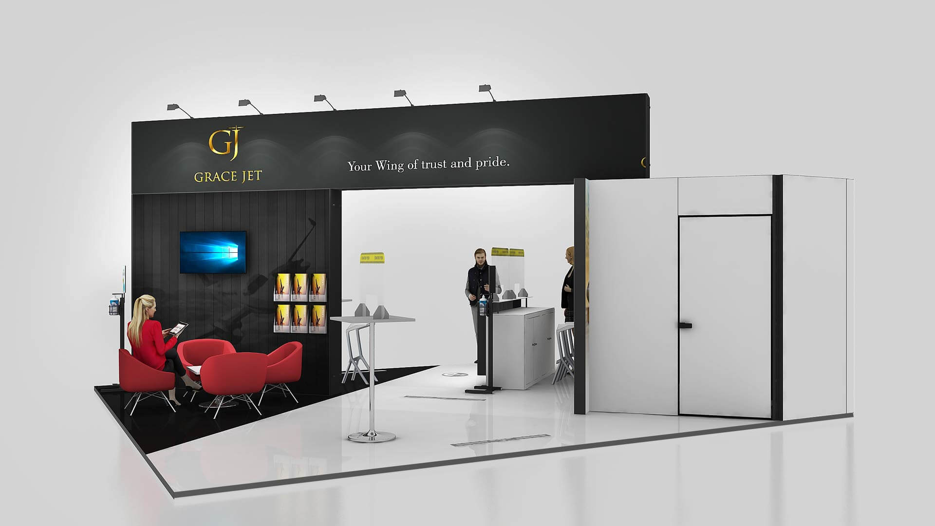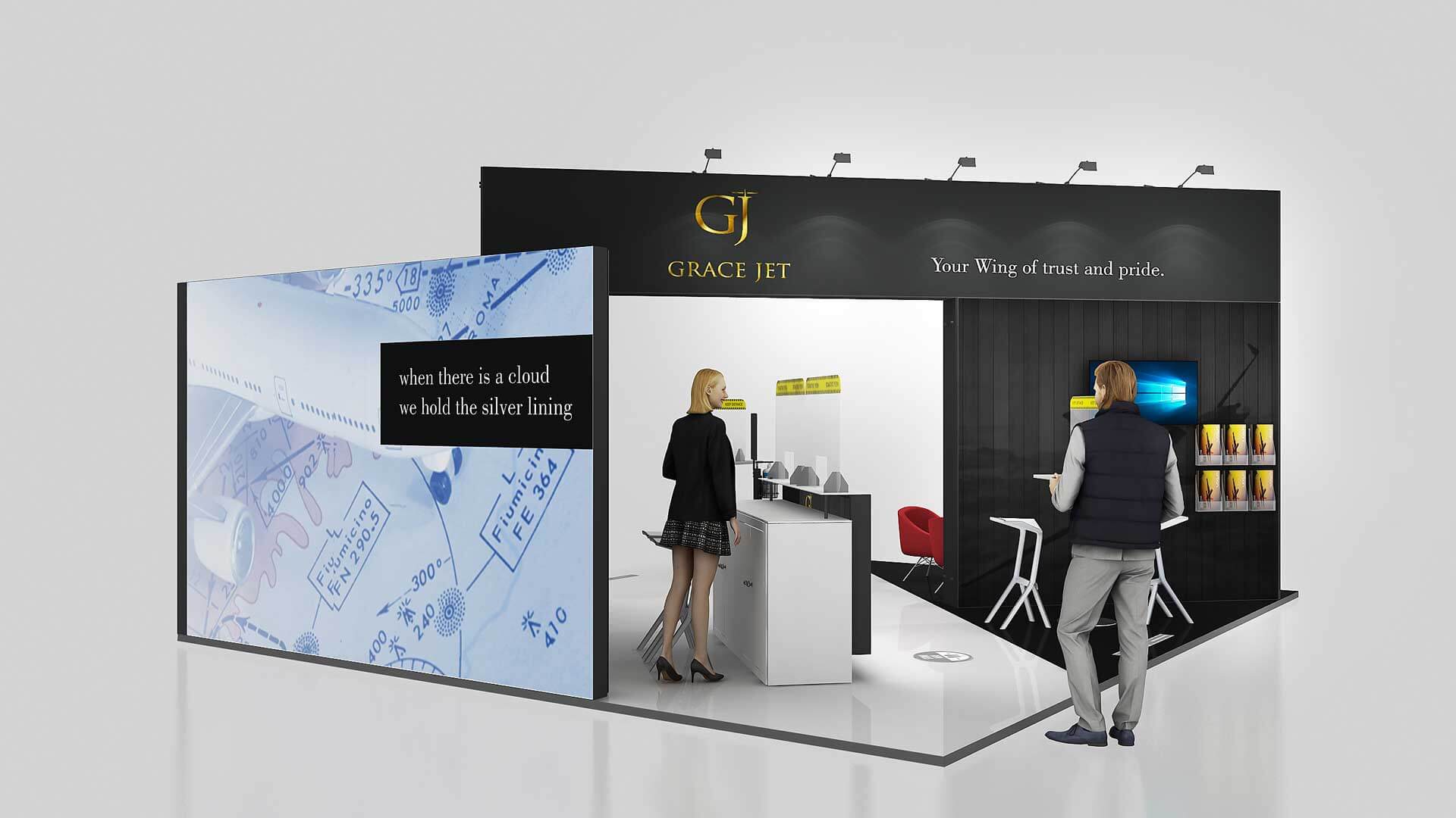 • Kostenloses 3D-Design – unabhängig davon, ob Sie einen Stand mieten oder kaufen wollen, wir bieten Ihnen einen kostenlosen 3D-Service ohne Verpflichtungen
