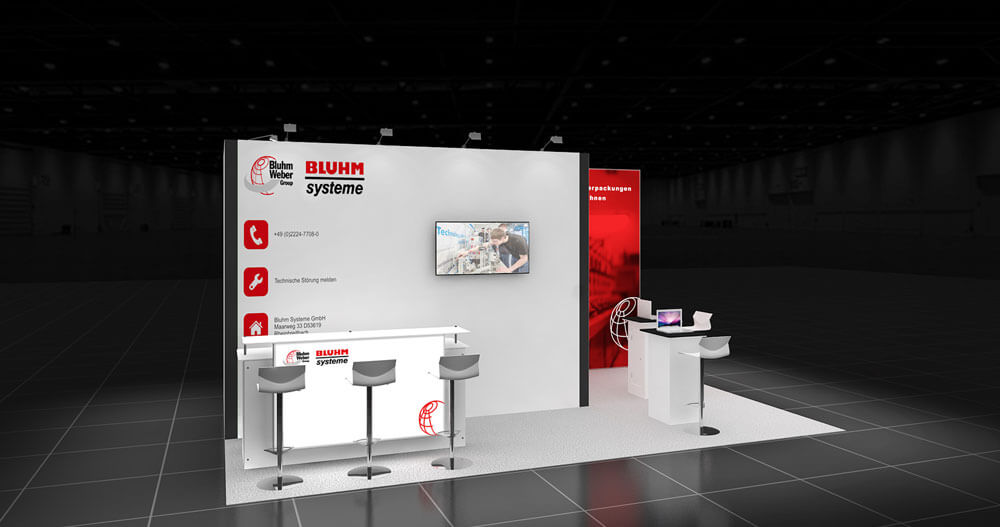 Kostenloses 3D-Design – unabhängig davon, ob Sie einen Stand mieten oder kaufen wollen, wir bieten Ihnen einen kostenlosen 3D-Service ohne Verpflichtungen