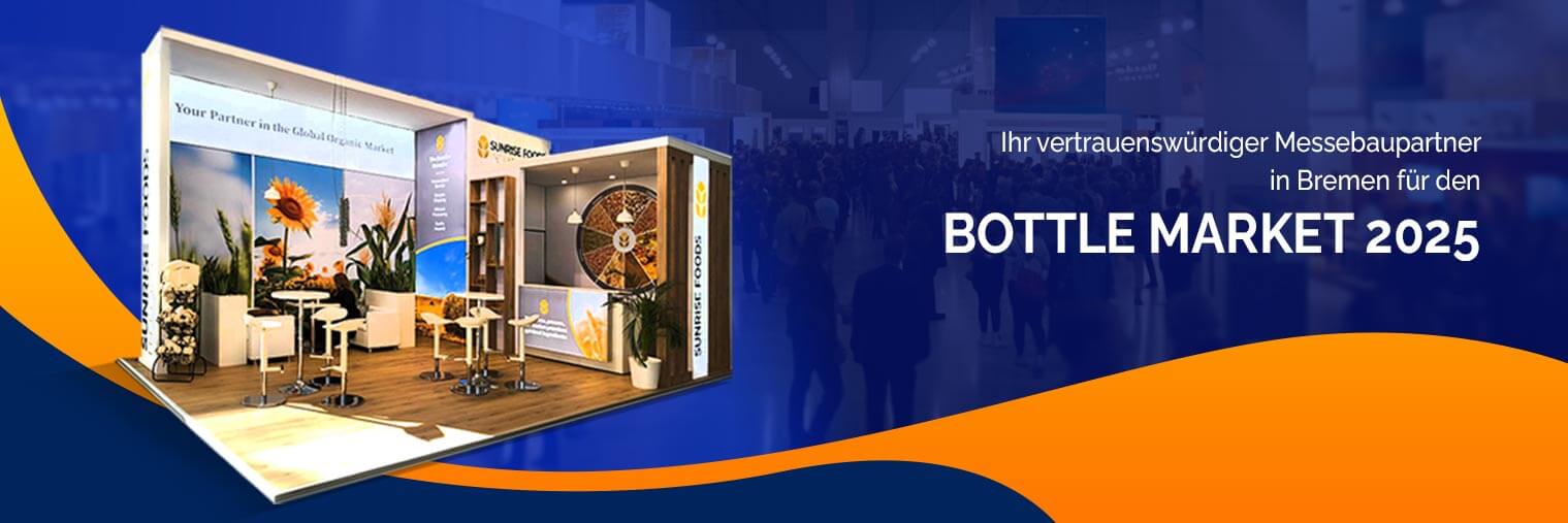 Unser lokales Team führt alle Leistungen vom Messebau in Bremen über die Gestaltung bis zum Abbau eigenständig durch, ohne Fremdvergaben, um die gewohnten Qualitätsstandards sicherzustellen. Unsere firmeneigenen Lieferfahrzeuge sorgen zudem dafür, dass alle Transport- und Logistikanforderungen professionell erfüllt werden. Egal, ob Sie aus unserer Bibliothek mit über 1.000 Messestand-Designs wählen oder einen vollständig individuellen Messestand wünschen – unsere Messebau-Experten in Bremen sind bestens ausgestattet, um all Ihre Anforderungen zu erfüllen. Präsentieren Sie Ihre Lösungen auf dem BOTTLE MARKET 2025 mit maßgeschneiderten Messestand-Designs von Expo Exhibition Stands.