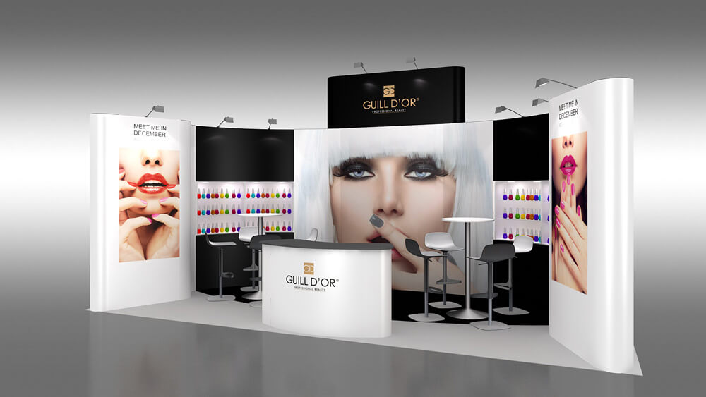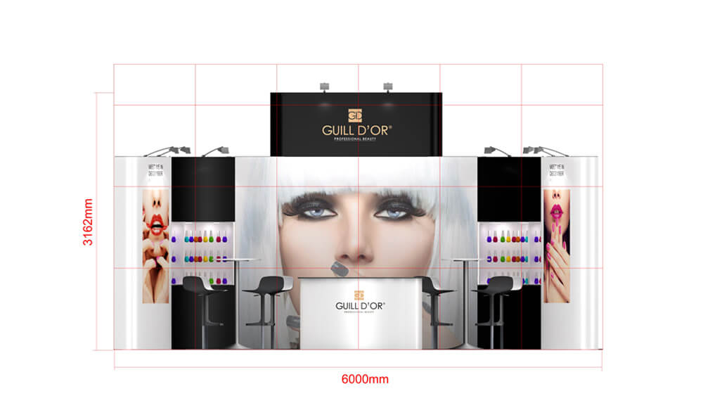 Lebenslanges kostenloses 3D-Design – sobald Sie einen Stand bei uns gekauft haben, können wir Ihren Stand für zukünftige Shows ein Leben lang kostenlos umgestalten.